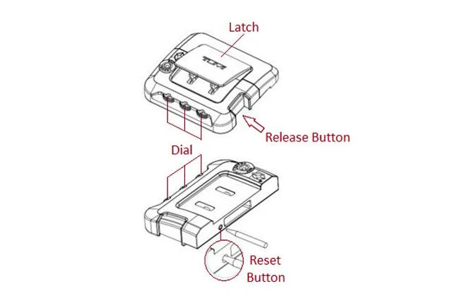 Comece por garantir que cada dígito está configurado no código de início predefinido em 0-0-0. Pressione o botão de liberação na lateral para abrir a fechadura.