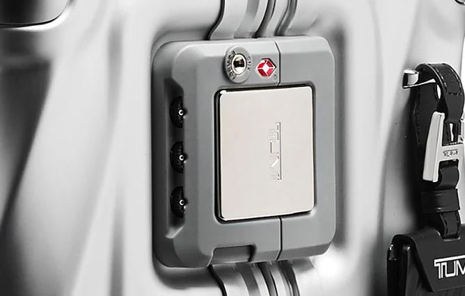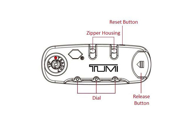 Quando ajustar o seu novo código, pressione o botão de liberação grande, localizado no lado direito do logotipo TUMI. Se os fechos saírem, o seu bloqueio foi configurado corretamente.